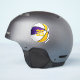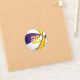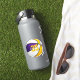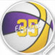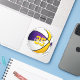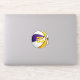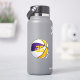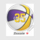 This custom basketball sticker features the realistic image of a basketball that has alternating purple, white and gold recolored panels upon which you can personalise the athlete's name and jersey number - by katz_d_zynes