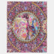 Purple, gold and blue colour Persian floral flower birds peacock pattern.