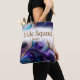 Bridesmaids have a lot to carry and this elegant bag will hold it all. Purple, gold, and aqua accent this beautiful design that says 'bride squad' with the name of the bridesmaid on the front, and the names of the bride and groom and wedding date on the back will make this bag a keepsake for years to come. All words are customisable.