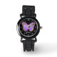 Here's a pretty watch for her, with the centre feature being a stunning purple and gold butterfly image. Her name is in silver below the butterfly, and silver numbers around the perimeter make the watch easy to read. Elegant for any little princess!