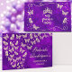 Celebrate your Quinceañera in style with this Modern Purple Gold Butterfly mis quince años Quinceañera design. Featuring a side border of golden butterflies flying around, along with space for customised text. The back showcases a unique tiara crown at the top and golden butterflies flying around along with space for customised text “mis quince años”. This design is perfect for a 15th birthday quinceañera celebration. You can customise all the details to match your special day. See the whole matching collection!
