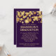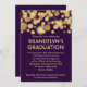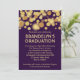 This stylish design features gold bokeh dots and a purple background. The mood of this announcement is one of celebration and excitement. Personalise this elegant graduation announcement with your information. If you need space for more information, the back of the announcement has plenty of room.