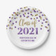 Purple Gold Confetti Graduation 2021 Paper Plate