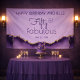 Celebrating a milestone birthday deserves a backdrop that feels elegant, confident, and unforgettable. This purple and gold Fifty and Fabulous banner features soft lavender tones, agate-inspired details, and a flowing script design that sets the mood for a stylish 50th birthday celebration. Designed for adult milestone parties, this banner works beautifully behind a dessert table, photo area, or welcome display in homes, banquet halls, or hotel venues. The design balances modern typography with rich colour contrast, making it an eye-catching focal point that photographs beautifully throughout the event.