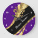Purple & gold fleur de lys large clock