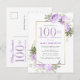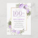 Purple Gold Floral 100th Birthday Party Invitation Postcard