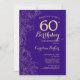 Purple Gold Floral 60th Birthday Party Invitation. Minimalist modern design featuring botanical outline drawings accents, faux gold foil and typography script font. Simple trendy invite card perfect for a stylish female bday celebration. Can be customised to any age. Printed Zazzle invitations or instant download digital printable template.