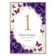 Purple gold Quinceanera celebration table number cards. Features, script font, gold butterflies, watercolor roses and tiara. Perfect for an elegant princess style glam celebration. Personalize with your own details. Printed Zazzle invitations or instant download digital printable template.