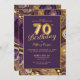 Elegant purple gold gemstone 70th Birthday party Invitation. 70th birthday invite features chic gold and purple marble gemstone style design and the numbers 70 are in gold foil-like balloon style.