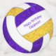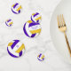 This fun volleyball birthday party confetti features girly purple, gold and white volleyballs with customisable "Happy Birthday" greeting and girl's name - by katz_d_zynes