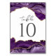 Purple Gold Glitter Agate Wedding Table Number