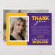 Purple & Gold Graduation 2 Photo Thank You Card