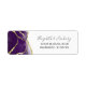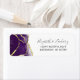 The left-hand edge of this elegant modern wedding invitation return address label features a purple alcohol ink border trimmed with faux gold foil and faux glitter. The customisable text combines charcoal grey handwriting and copperplate fonts on a white background.