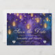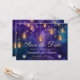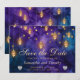 This stunning Save the Date card features a captivating blend of deep purple and gold, with magical lanterns glowing against a rich watercolor backdrop. The shimmering gold accents and sparkling hearts create an enchanting and romantic atmosphere, setting the perfect tone for your upcoming wedding. Whether you’re hosting an elegant ceremony or a modern celebration, this design combines timeless beauty and contemporary charm. Its sophisticated and dreamy look will ensure your guests are excited about the special day ahead!