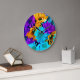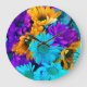 Purple Gold N Turquoise Daisies Large Clock