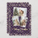 Purple Gold Plaid Photo Collage Merry Christmas Holiday Card