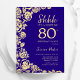 Purple Gold Roses Surprise 80th Birthday Invitation