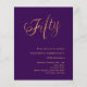A modern, stylish invitation for a 50th birthday party. A purple coloured background and the word Fifty written with elegant large script letters in faux gold. Personalise and add a name and party details.