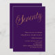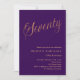 A modern, stylish invitation for a 70th birthday party. A purple coloured background and the word Seventy written with elegant large script letters in faux gold. Personalise and add a name and party details.