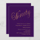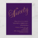 A modern, stylish invitation for a 90th birthday party. A purple coloured background and the word Ninety written with elegant large script letters in faux gold. Personalise and add a name and party details.