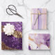 Purple Gold Sparkle Glitter Girly Stripes Birthday Wrapping Paper Sheet