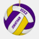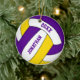 This sporty volleyball Christmas ornament features a purple, gold and white volleyball with customisable boy's name and year - by katz_d_zynes