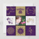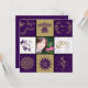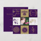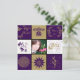 This graduation announcement is a beautiful tribute to your graduate. The background is a grid with 9 squares in purple, gold, and white. Your photo goes in the centre square and in the other squares are purple and gold floral designs. In the upper left there is an area for the name and in the upper right is a spot for 'class of.' The back is purple with your customised text in gold.