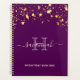 A stylish girly and feminine dark purple coloured background with shining faux gold stars dripping, drips.  Personalise and add your name, monogram letter and a title.  A planner for organising business clients, appointments, to do lists, or your daily life.  The name is written with a large trendy hand lettered script with swashes. To keep the swashes only delete the sample name, leave the spaces or emoji's in front and after the name.  Light pink and purple letters.