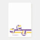 This volleyball themed notepad features 3 randomly arranged purple, gold and white volleyballs overlying thin purple & gold horizontal stripes at the bottom edge of the pad - personalise with the athlete's or coach's name - by katz_d_zynes