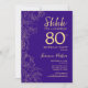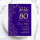Purple Gold Surprise 80th Birthday Invitation. Minimalist modern feminine design features botanical accents and typography script font. Simple floral invite card perfect for a stylish female surprise bday celebration.