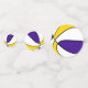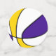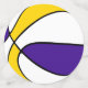 The front and back of each piece of this basketball birthday party confetti features the image of a basketball that has alternating purple, white and gold panels - customise with the child's age on one confetti piece, or delete - by katz_d_zynes