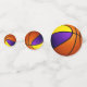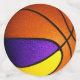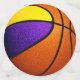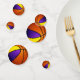 The front and back of each piece of this basketball birthday party confetti features the realistic image of a basketball that has two recolored panels, one purple and one gold - by katz_d_zynes