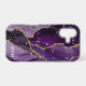 Protect your phone in style with this chic design featuring your monogram and colourful shades of purple agate with metallic gold foil veins and sparkly stars.