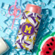 Purple gold volleyballs pattern monogrammed seltzer can cooler