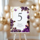 Purple Golden Tiara Roses Butterfly Quinceañera Table Number