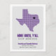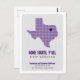 Let them know where you're going with this classy moving announcement. Features the state of Texas in a grid pattern with a heart you can move to show where your new house is. Backside features your message encouraging people to come see you. Comes in burnt orange, maroon, red, state flag blue, green, purple, orange, black and yellow - most based on state school colours. Matching products available.