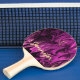 Ping pong paddle with trendy colours and design. Girly and feminine colours. Dramatic goth inspired shades of purple, pink and black colours in waves and swirls making an modern abstract pattern. Personalise with Your name on front, light yellow coloured letters.