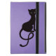 Elegant cat iPad Air case with a beautiful illustration of a gracious evil black cat with glowing eyes on a night watch in the dark purple haze.