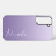 A custom personalised Samsung phone case in a modern soft purple gradient design. The trendy handwriting script font adds a unique touch when adding your name.