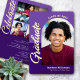 Be proud, rejoice and showcase this milestone of your favourite grad! Send out this stunning, simple, modern, personalised 4 photo announcement invitation for an event to remember. On the front, bold, graphic, real gold foil handwritten script calligraphy, sans serif typography and a photo of your choice in an arch overlay a light and dark purple background. On the back, 3 additional custom photos and your message overlay light and dark purple. Here you can add your personal note, next school they’re attending, party information, etc. Matching and coordinating thank you cards, hand fans, napkins, address labels and other graduation goodies are also available in this trendy and minimalist collection. Guaranteed to add stylish fun to their special occasion!