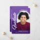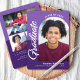 Be proud, rejoice and showcase this milestone of your favourite grad! Send out this stunning, simple, modern, personalised 4 photo announcement for an event to remember. On the front, bold, graphic, white handwritten script calligraphy, white and dark purple sans serif typography and a photo of your choice in an arch overlay a dusty purple and deep purple background. On the back, 3 additional custom photos and your personalised note overlay light and dark purple. Personalise the custom text with your grad’s name, school and class year. On the back, add 3 more photos and your personal note of the next school they’re attending, their degree, – or whatever else you want to share. Matching invites, thank you cards, cap toppers, napkins, plates and other graduation goodies are also available in this trendy and stylish collection. Guaranteed to add stylish fun to their special occasion!