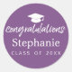 Purple Graduation Cap congratulation modern script Classic Round Sticker