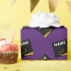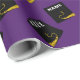 Creative graduation gift wrap and grad party decoration featuring black and gold graduation cap on purple background. Edit text to add grad's name and the senior class year.