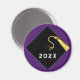 Grad gift or graduation party favours featuring black cap and gold tassel on a purple background. To personalise edit text to add senior class year.