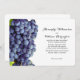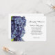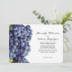 Winery wedding invitations with purple / blue grapes on white paper. Black template text with bride and groom inviting. Horizontal / landscape set up.
