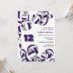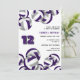 This volleyball themed party invitation for a birthday or team party features clusters of purple, gray and white volleyballs at the top and bottom edges on the front and a single cluster covering the back of the invitation - customize the party details on a white background - by katz_d_zynes