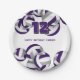 This volleyball themed birthday party paper plate is fully customizable and features clusters of purple, gray and white volleyballs at the top and bottom edges - personalize with your custom text - by katz_d_zynes
