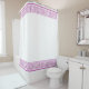 Shower curtain with a Grecian frieze design. You can customise this shower curtain with any text of your choice. Should you require any help with customising then contact us through the link on this page. You can have this shower curtain in any colour you want. Just select your preferred colour from the menu. Purple Grecian frieze design shower curtain