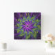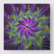 Purple Green Flower Modern Abstract Fractal Art Square Wall Clock