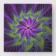Purple Green Flower Modern Abstract Fractal Art Square Wall Clock